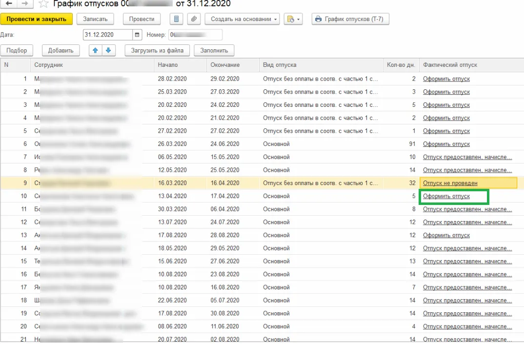 Передача отпусков в 1С: Зарплата и управление персоналом