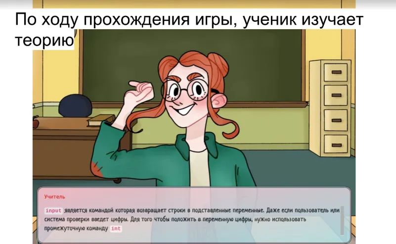 В итоге работы над проектом представлен прототип визуальной новеллы для изучения программирования, включающий теорию и практику.