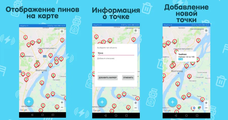 В одном шаге от победы была еще одна команда — See Every Event, г. Камышин, Волгоградская область. Их проект «Карта мелкой урбанистики или ПешеКарта» немного отстал от лидеров. Разработчики: