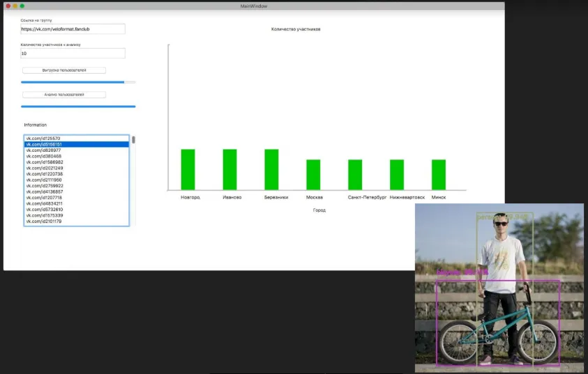 - поиск объектов (велосипедов) на фотографиях пользователей с помощью нейронных сетей;