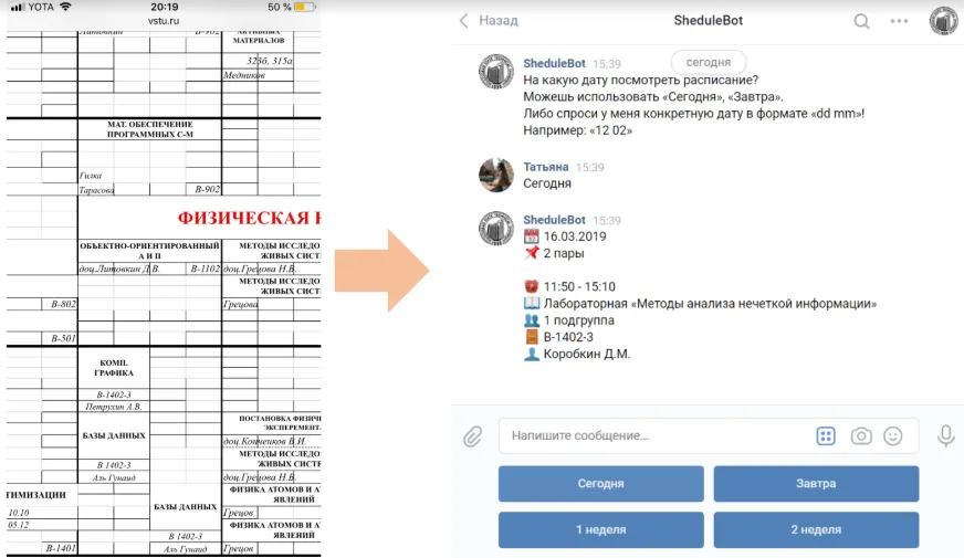 В итоге чат-бот расписания для ВК умеет: