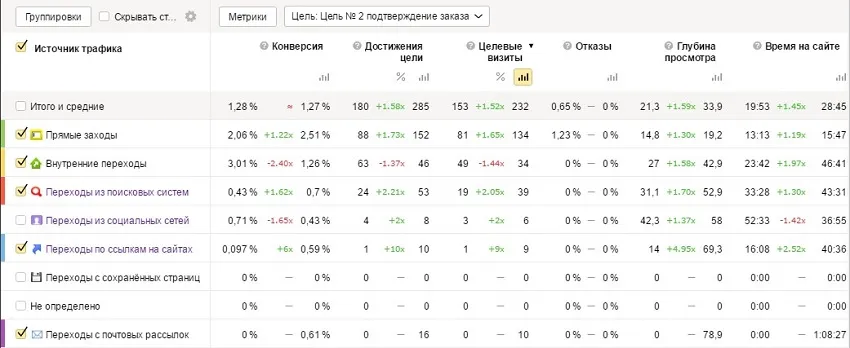 Процент отказов по рассылкам небольшой, в среднем — 5%. Глубина просмотра с рассылок в среднем 6 страниц.