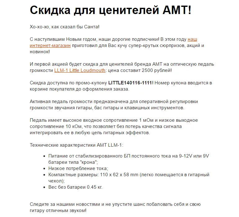 Кейс: Увеличение продаж в 1,5 раза с помощью почтовых рассылок интернет-магазина гитарных эффектов