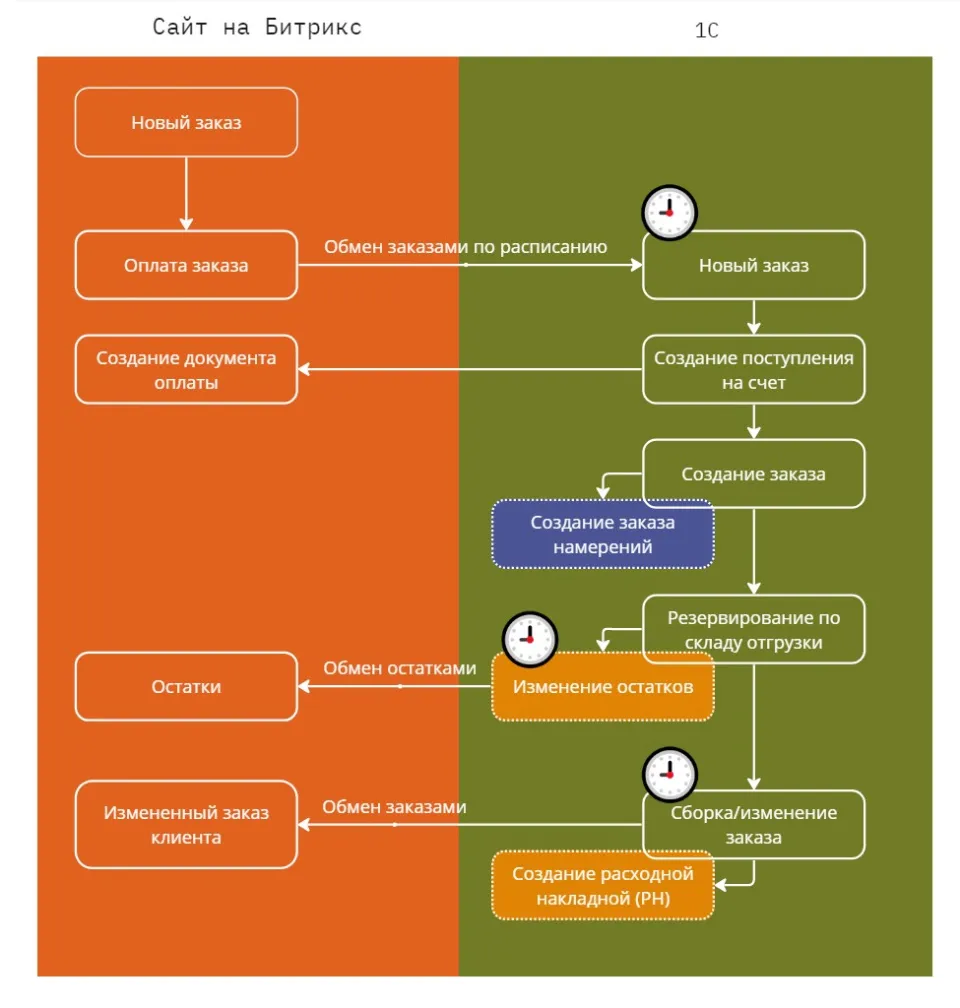 ИНТЕРВОЛГА давно работает с Битрикс, поэтому мы хорошо знаем его API. То же самое можно сказать про REST 1C. А вот с обменом с другими ИТ-системами пришлось повозиться, тем более что стояла цель – увеличить скорость обмена.