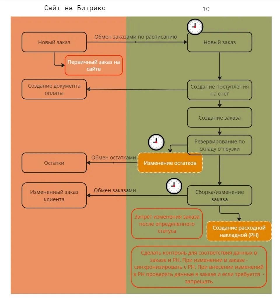 Возникали различия в остатках в 1С и на складах. Например: В 1С – 12шт. На сайте – 10шт. Покупают 1шт. В 1С становится 11 шт, на сайте 10 шт. |