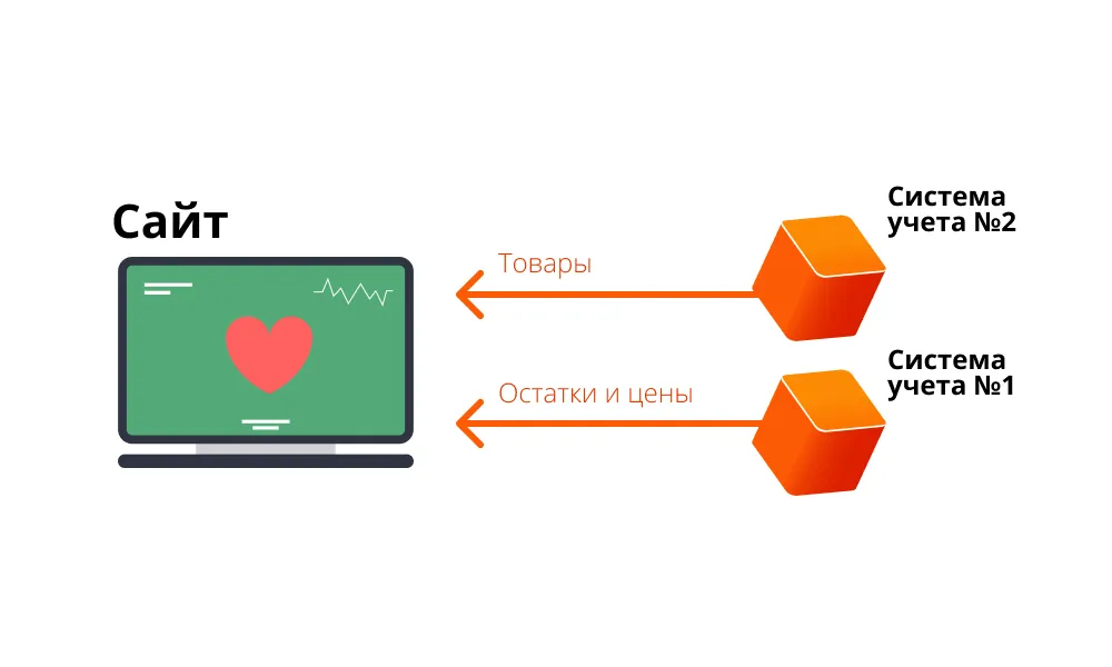 В основе любого магазина лежит интеграция с системой учёта. Сайт может быть насколько угодно красивым и удобным для пользователей, если на нём неверные цены, не те остатки товаров, или вообще не тот ассортимент, никаких продаж не будет.