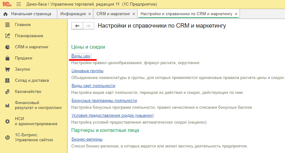 Справочник Виды цен в 1С