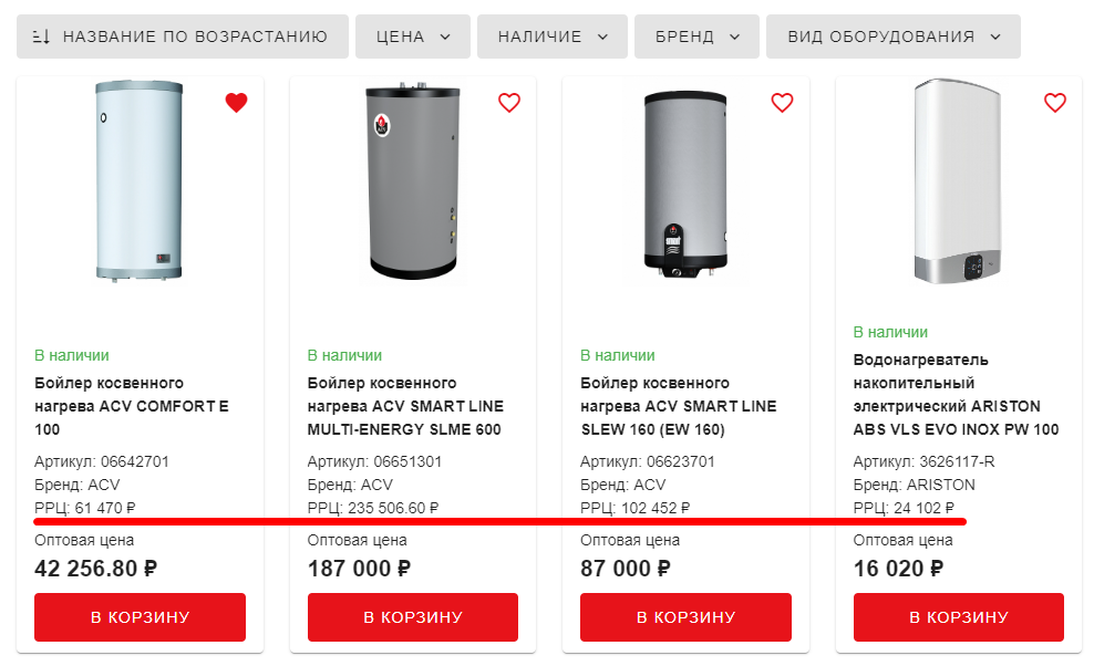 Для оптовых продаж характерно желание дилеров видеть какую потенциальную прибыль они могут заработать на том или ином товаре. Для этого на портале реализован вывод рекомендованной розничной цены (РРЦ).