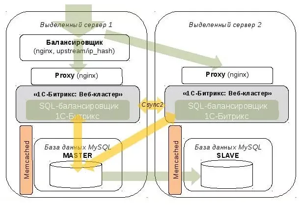Существуют разные способы горизонтального масштабирования. Большинство из них подробно описаны в интернете. Однако, не все совместимы с проектами на 1С-Битрикс. Кроме этого, не каждая редакция 1С-Битрикс позволяет это сделать. Например, для интернет-магазинов нужна редакция «Энтерпрайз / Enterprise», т.к. в ней есть модуль «Веб-кластер».