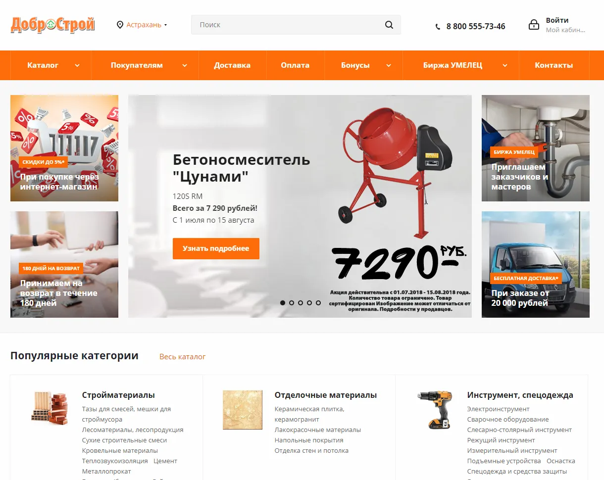 Добрострой.рф, астраханский дилер строительных материалов и товаров для дома, пришёл к нам с типичными задачами: обновить сайт и увеличить продажи.