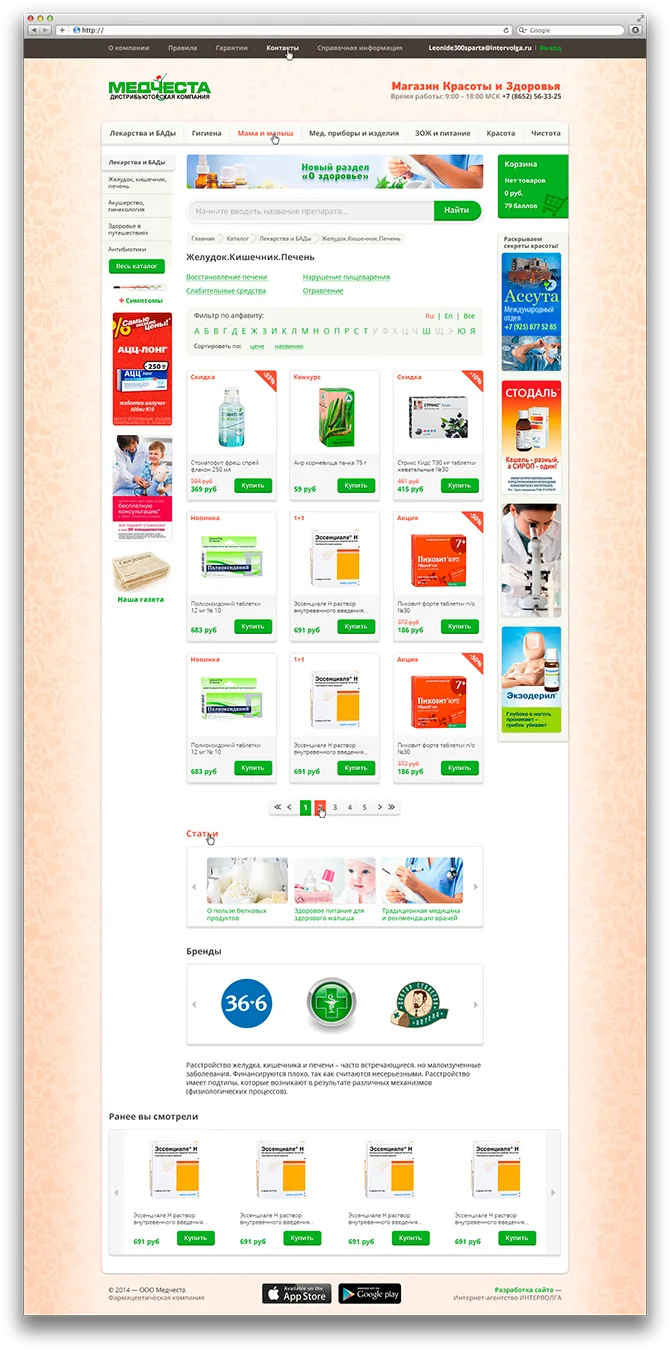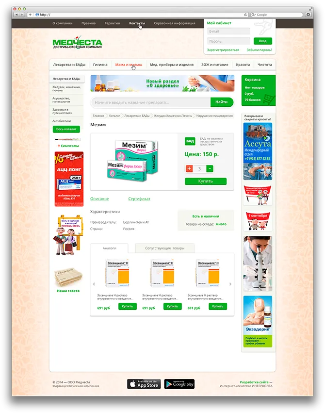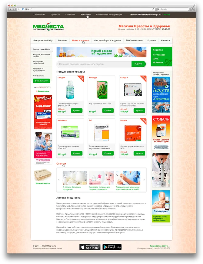 Разработка интернет-аптеки Медчеста