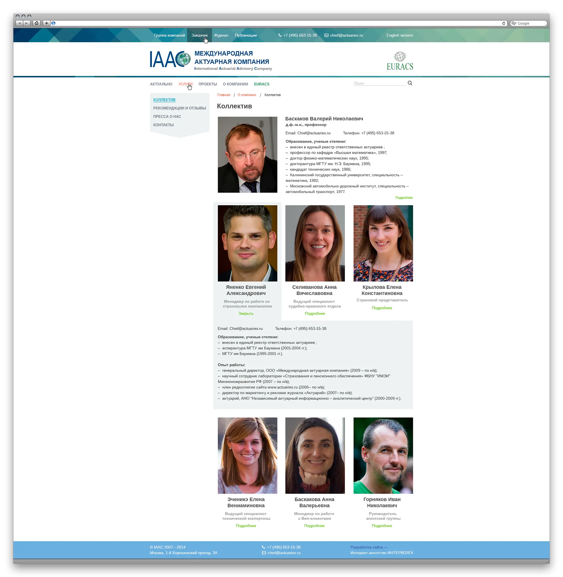 Услуги разбиты по направлениям, примеры работ и отзывы клиентов опубликованы, история бренда и коллектив представлены. Несмотря на сложность и специфику предоставляемых услуг, сайт получился легким, светлым и современным.Результат