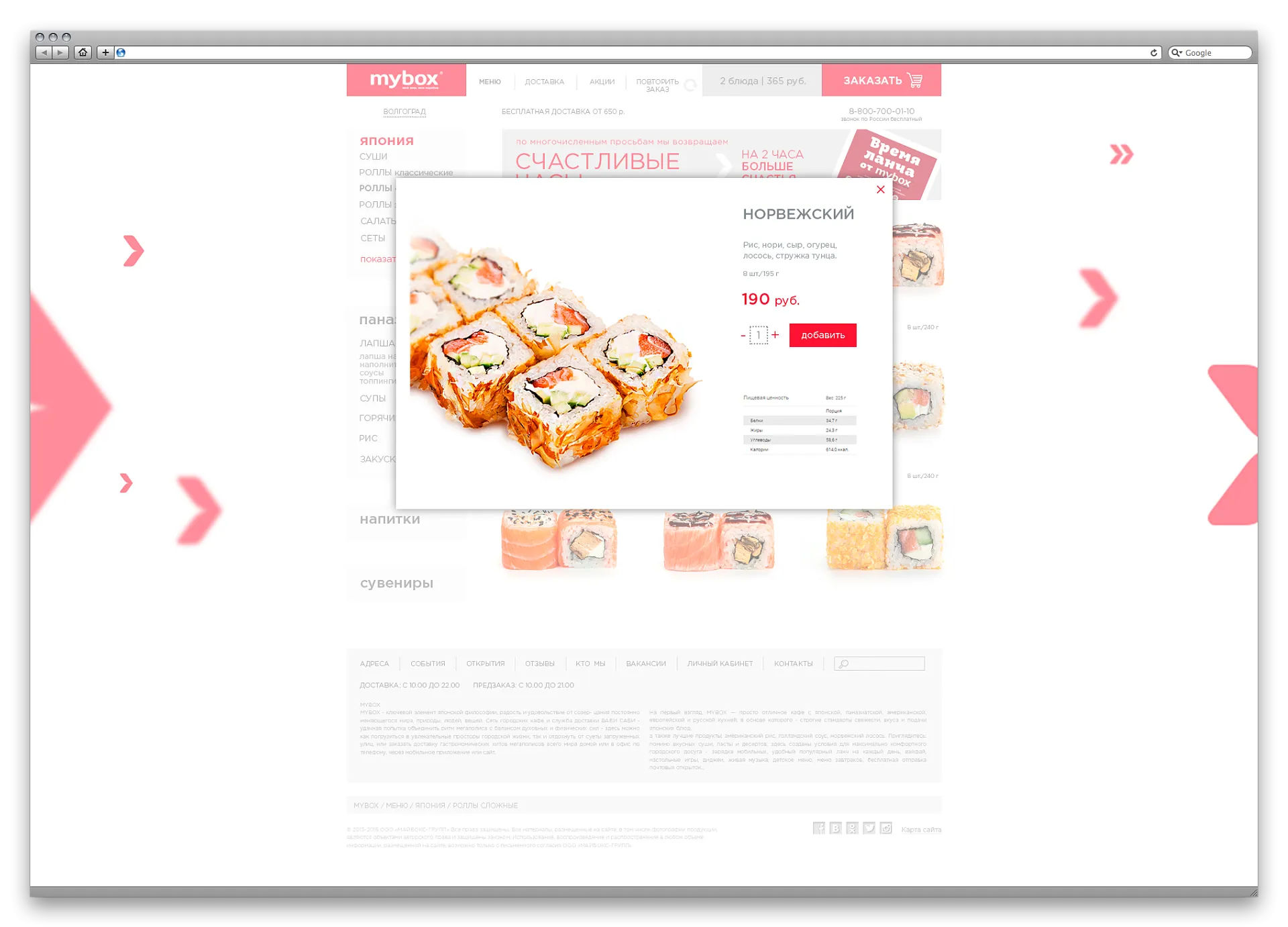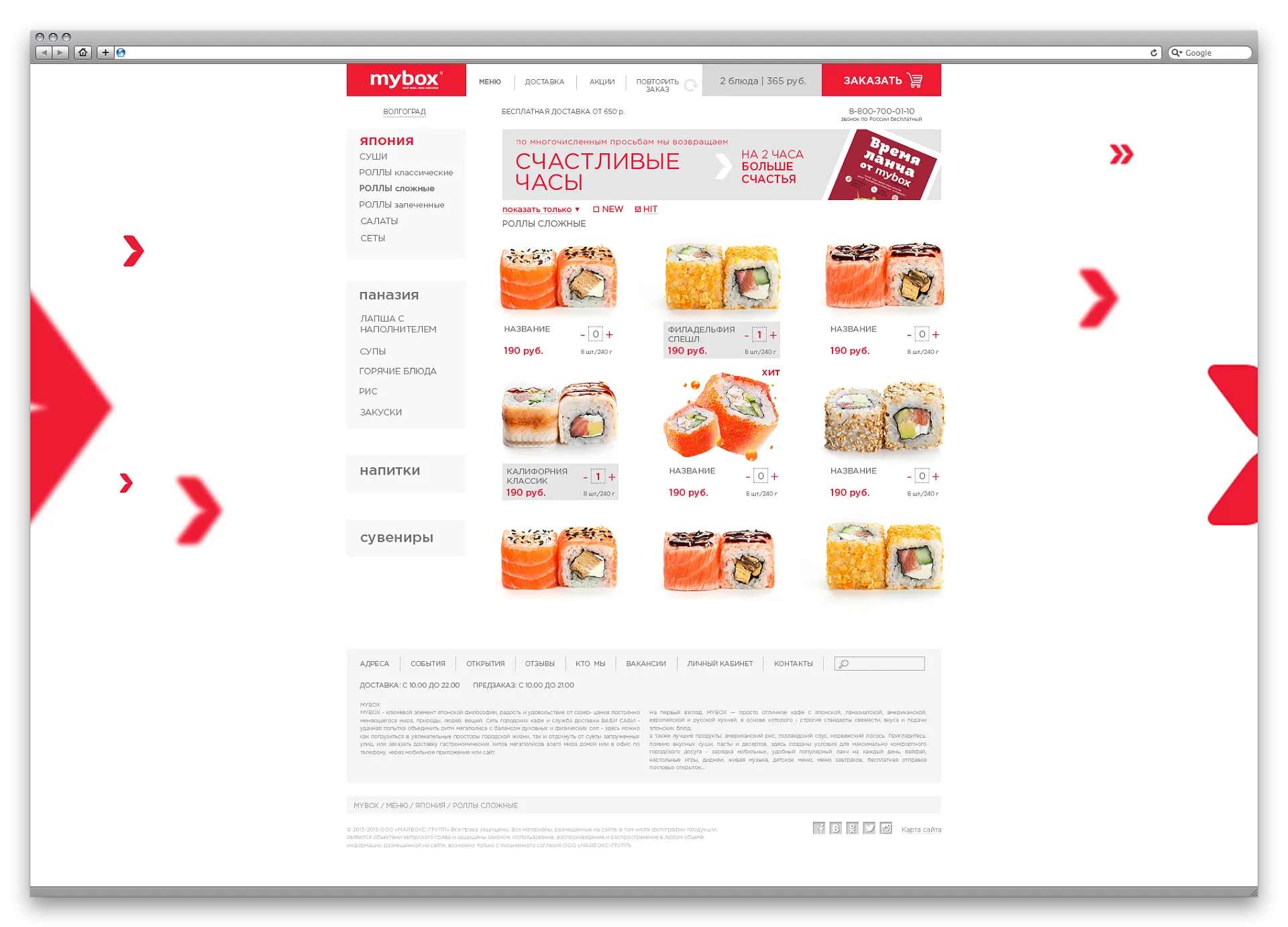 Разработка интернет-магазина японской и азиатской еды Mybox