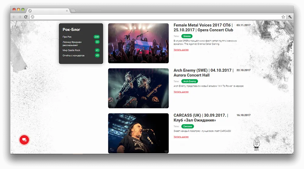 - фотогалерея, если группа приходила в гостях у Castle Rock (а таких групп много!),