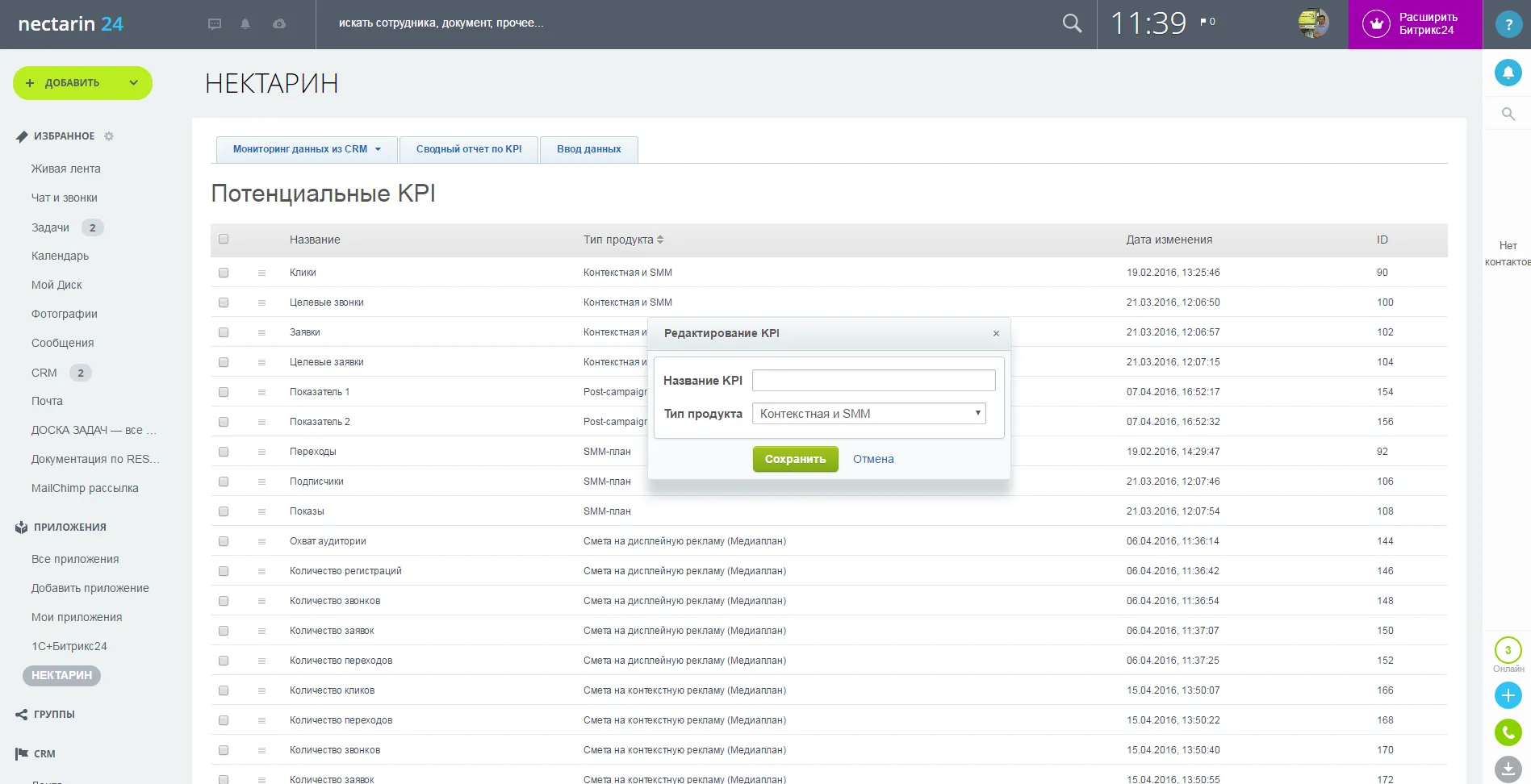 В CRM Битрикс24 есть компании, контакты, лиды, сделки, предложения, счета и товары. А у клиента есть индивидуальные, сложно поддающиеся формализации контракты.Например, предложение может содержать несколько продуктов. Причём, у каждого продукта свои особые специальные KPI. Так, в рамках одного контракта (договора), может продаваться контекстная реклама и SEO-продвижение. Для компании А в услуге «контекстная реклама» будут одни KPI (к примеру, целевой показатель — 1000 переходов), а для компании Б уже другие (10 000 переходов).