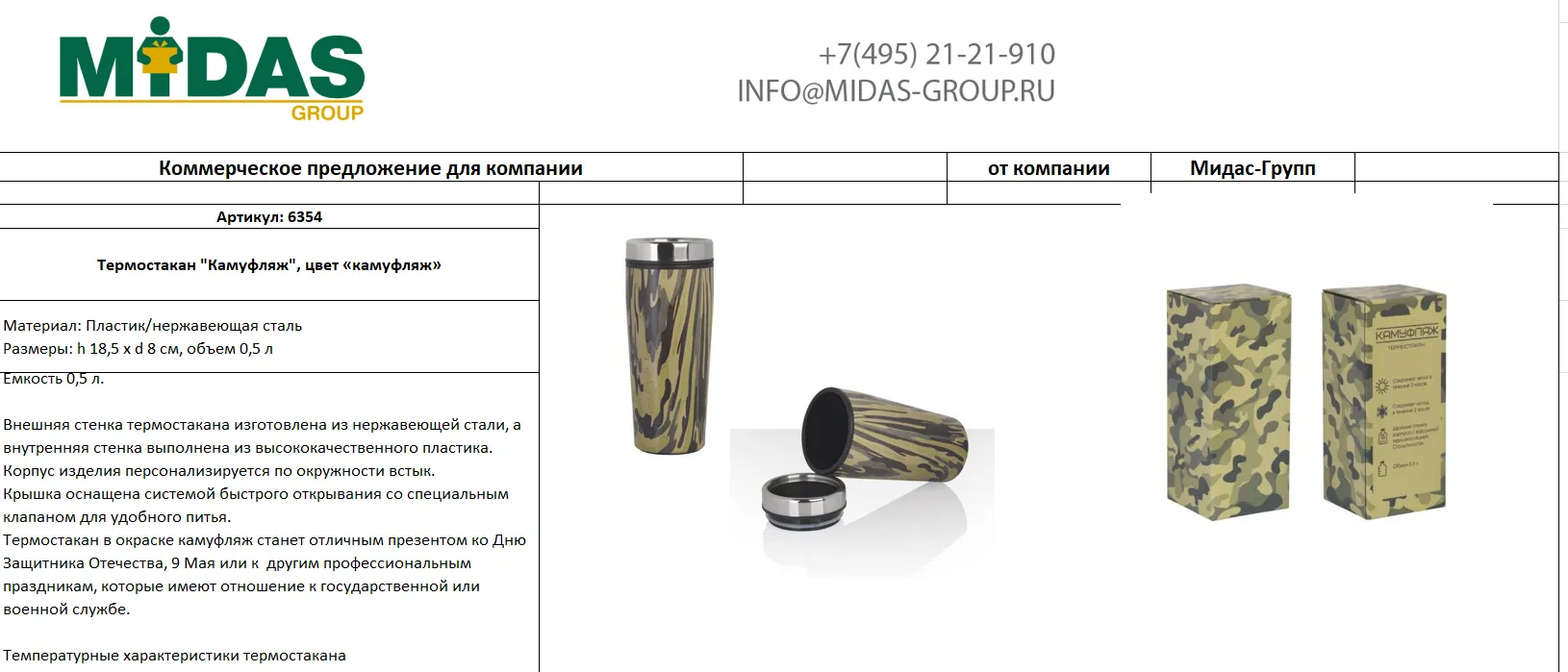 Мидас-групп производит рекламную продукцию, корпоративные подарки и сувениры на заказ. Обеспечивает изготовление сувениров с логотипами, уникальным дизайном к праздникам и другим событиям. Если нужны шоколадки с конкретным логотипом или блокноты с оригинальным дизайном — Мидас-групп поможет с этой задачей.