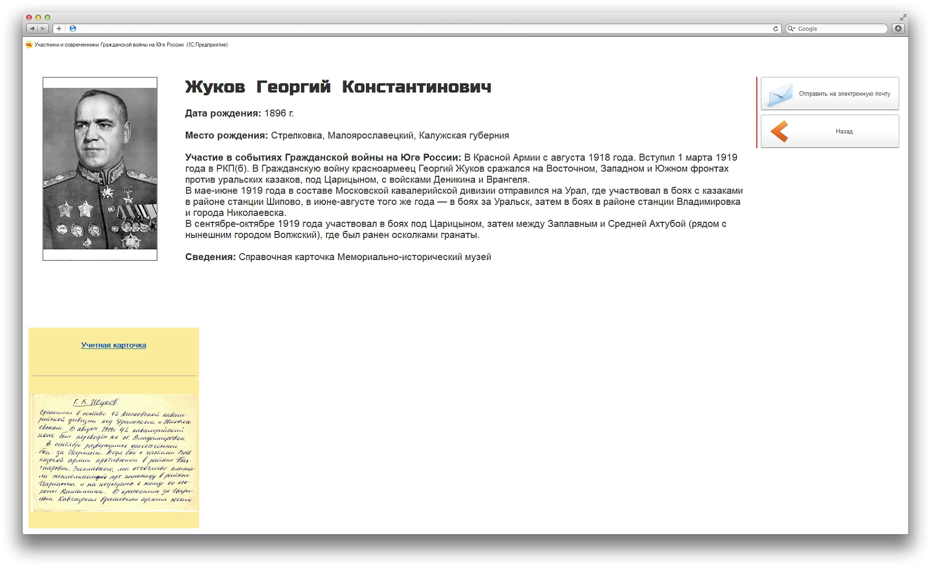 Мы реализовали практичную и удобную интерактивную музейную систему на 1С.Теперь архив участников Гражданской войны на Юге России оцифрован и любой житель Волгограда или турист может отыскать своих родственников и получить моментально информацию о них.
