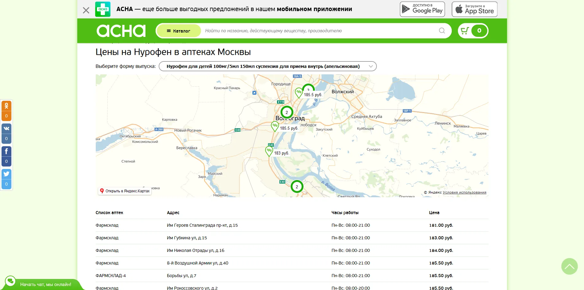 ИНТЕРВОЛГА с 2018 года занимается развитием сайта сети аптек совместно с другим подрядчиком. За это время решили задачи самого разного калибра.- Разработка чат-бота для Яндекс Алисы, ВКонтакте и Facebook