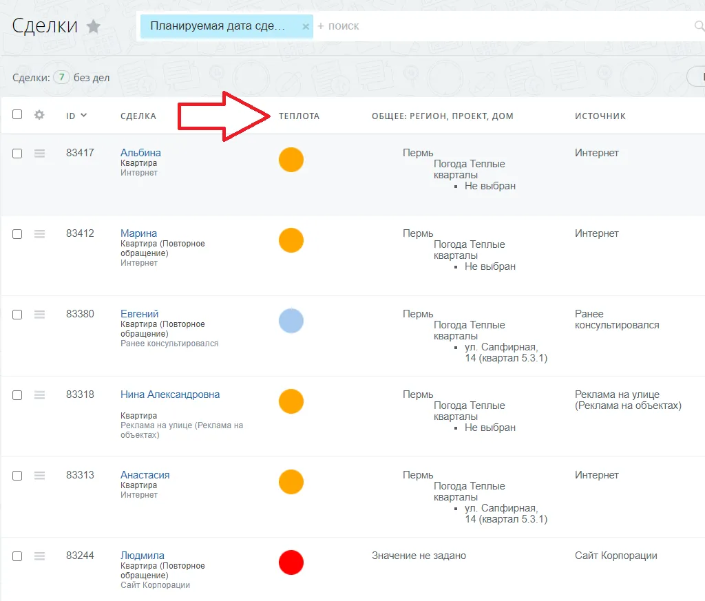 Но нет наглядности при работе с ним. Графическая маркировка, напротив, позволит легко фильтровать сделки, у которых критичны сроки. Для визуального отображения теплоты согласован следующий вариант градации:;