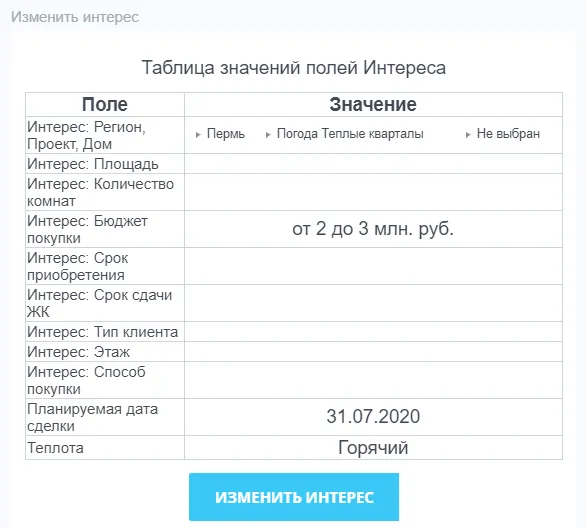 Ключевыми требованием к доработке является сохранение возможности менеджером управлять “теплотой”. Если клиент “желтый” по расчетам, но в реальности горячее, то менеджер может изменить рассчитанное значение и установить свой вариант.