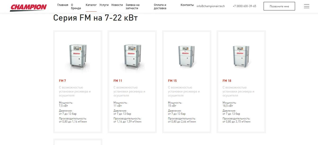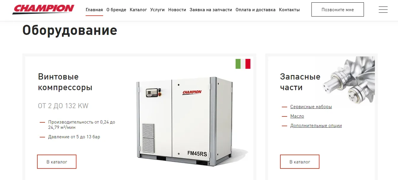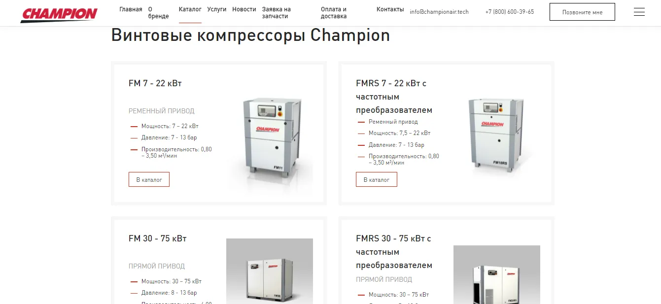 Компания «Профессиональный инструмент» является единственным официальным дистрибьютором бренда Champion (входит в группу «Gardner Denver») на всей территории России. Основная цель проекта — интернет-продвижение винтовых компрессоров бренда Champion для роста количества заказов. Перед решением этой задачи важно было частично доработать сайт, так как прежнее юзабилити сайта не позволяло осуществлять заказы.Решенные задачи: