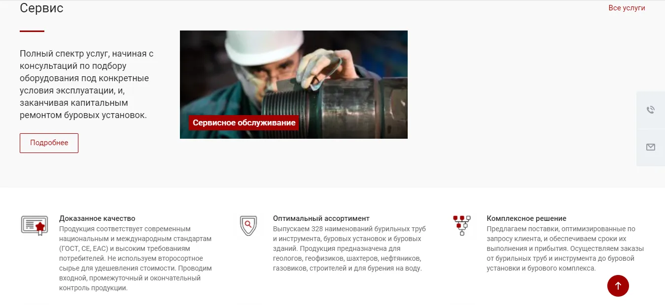 Компании была крайне необходима современная и актуальная презентация продукции. Так как движок старого сайта уже не позволял вносить изменения, пришли к выводу, что требуется перенос сайта на 1С-Битрикс с доработками. Кроме этого новый сайт должен быть ориентирован на несколько сегментов целевых аудиторий. В рамках стратегического развития и продвижения сайта бурового оборудования уделялось внимание именно зарубежной аудитории.Задачи