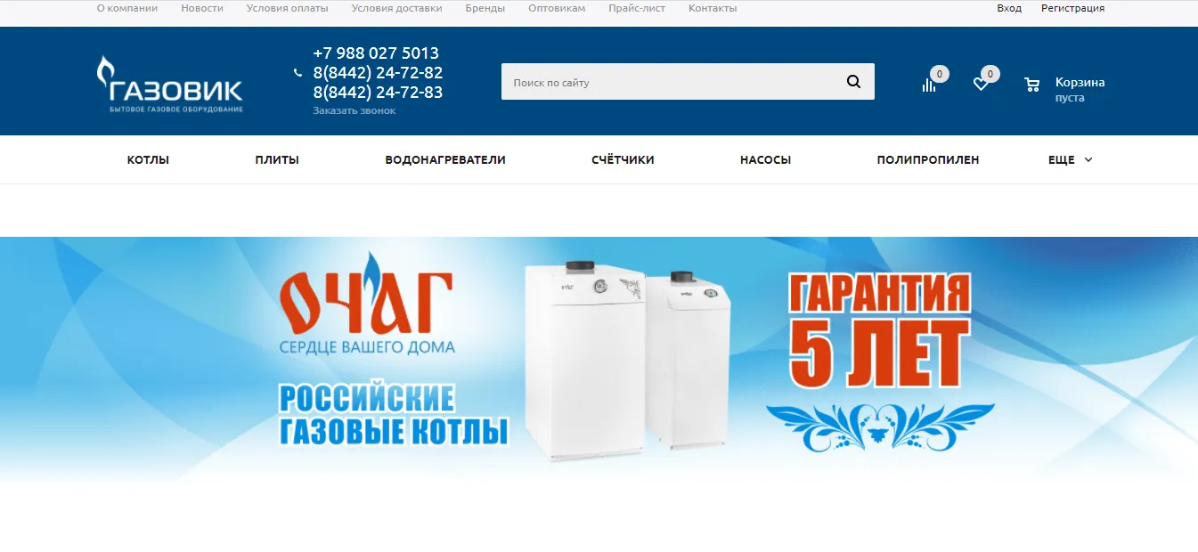 Прежний сайт был «самописным» и не удовлетворял современным потребностям пользователей. Разработка нового сайта бытового газового оборудования, с оформлением заказа и оплатой решила эту “боль” и значительно помогла комплексному продвижению сайта.