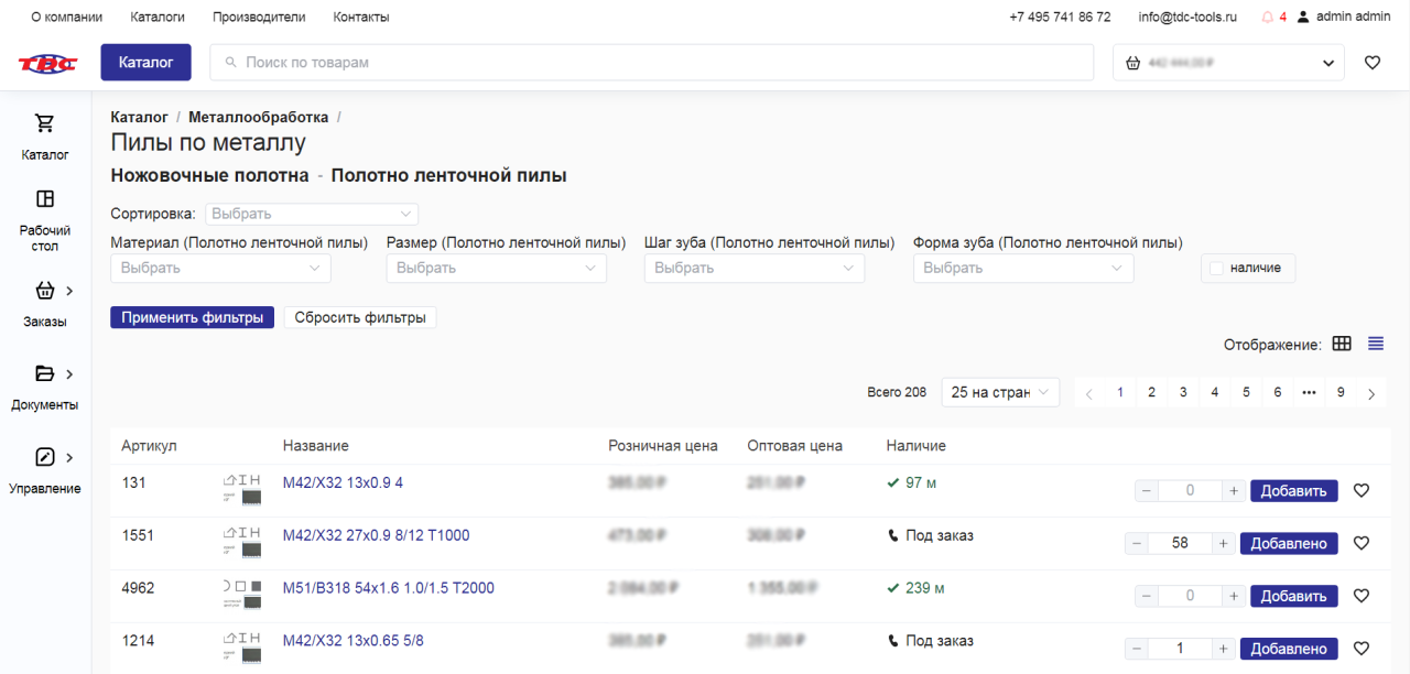 Каталог b2b-платформы производителя металлорежущего инструмента