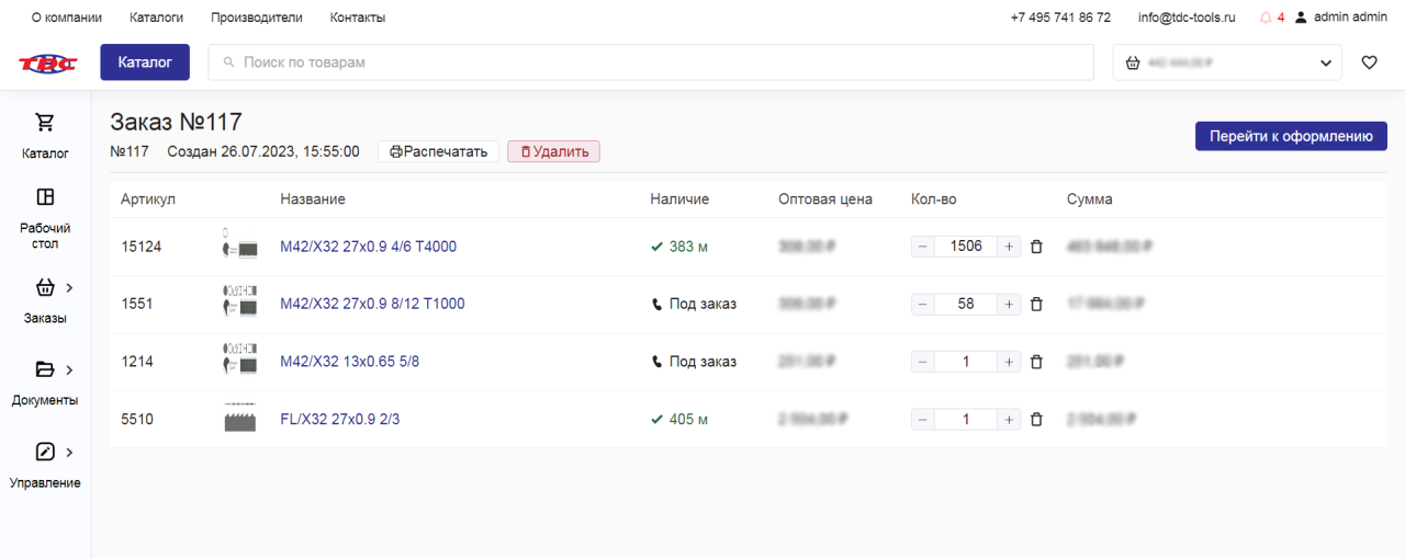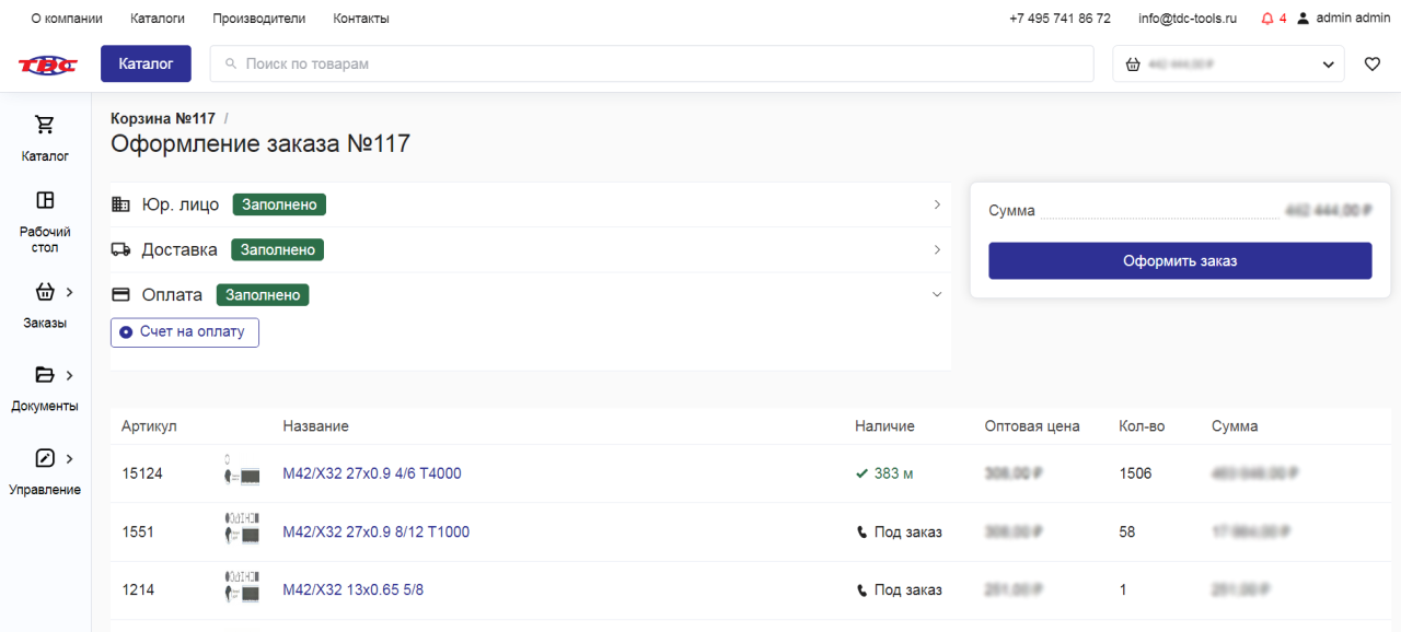 Страница оформления заказа оптовым клиентом